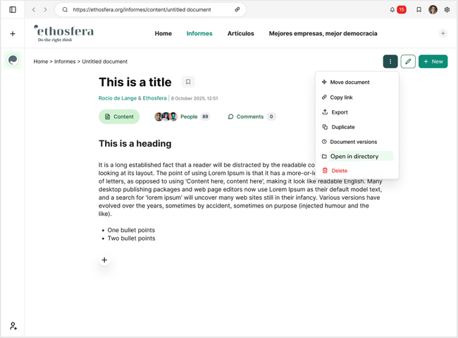 The Site's directory you see all documents with hierarchy. Having the full page space gives a better UX to see more information as number of citations, comments, authors.