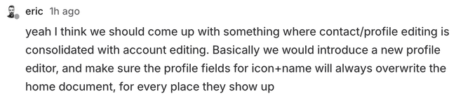 I like this solution of consolidating the profile and account. It works for desktop and web. The profile/account would be edited in the profile section.