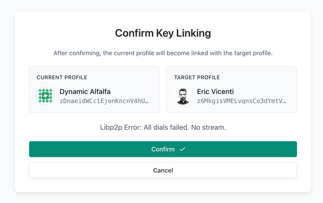 The error says Libp2p Error: All dials failed. No stream.