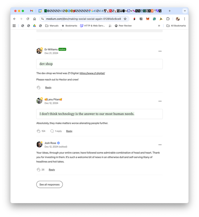 The comment Section shows 3 comments, and with a See all responses it takes you to the Side right panel.