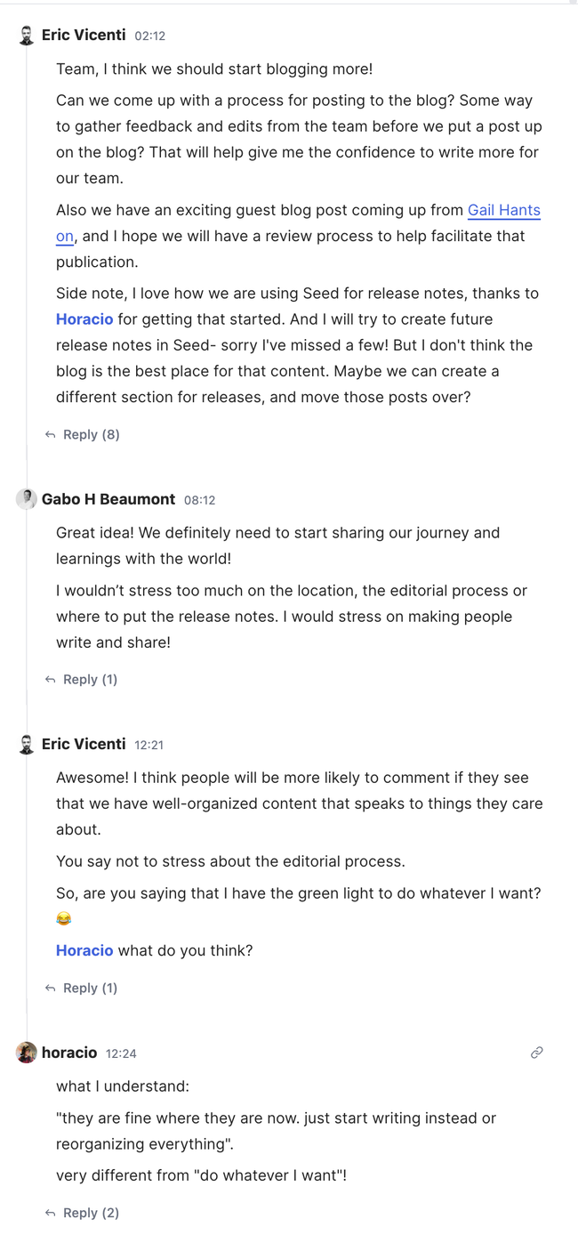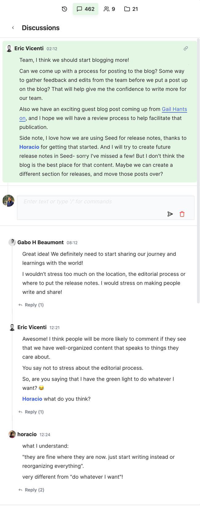 Why when I click on Eric's comment, I don't see the 5 replies to Horacio's comment? This is the most confusing part. The number says 8, but there's no way to see those 8 comments.