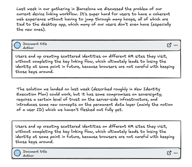 This proposal aims to make embeds more explicit, and make sure is clear that the content is coming from another document.