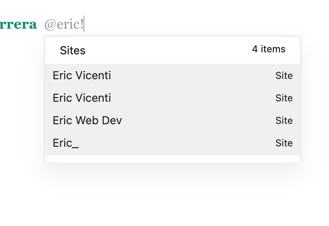 Every time I want to mention Eric, I have four Sites. I only wish to have Contacts over here!