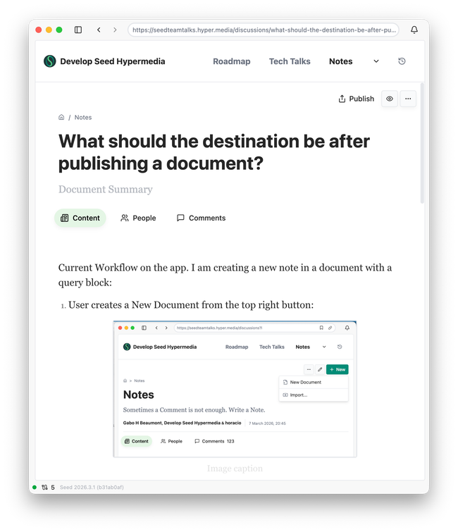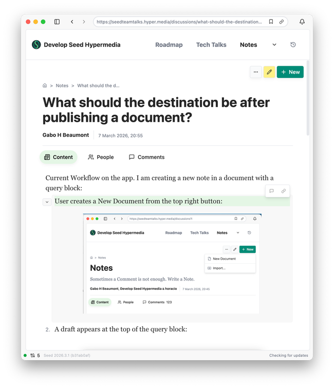 Current Workflow on the app. I am creating a new note in a document with a query block: