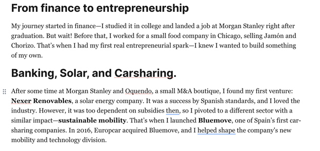 I convert Banking, Solar, and Carsharin into a Heading. See how little spacing is created!