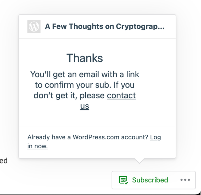 So, you do get a wordpress.com implicitly after you confirm the subscription, but it's not getting in the way too much.