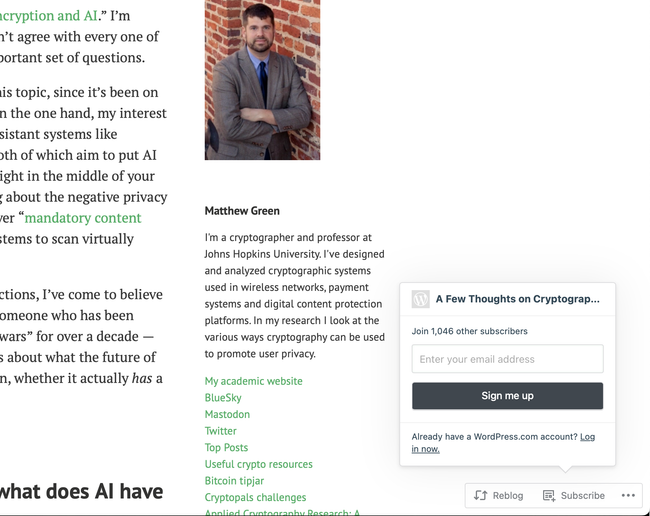 The other day I've found this web site: https://blog.cryptographyengineering.com, and it seems to be using a managed wordpress.com instance with a custom domain.
