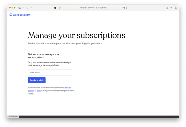 So, they let you subscribe with an email, or with your wordpress.com account if you have it.