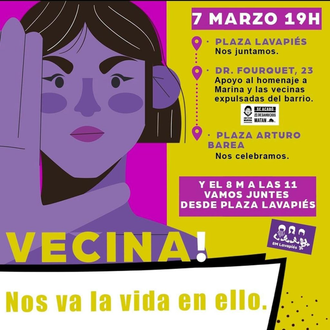 Por su parte, la Asamblea 8M Lavapiés participará en la acción apoyando el homenaje, para después reunirse en la plaza de Arturo Barea.