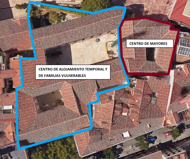 De su superficie total construida, 1.583 metros cuadrados estarán destinados a centro de mayores, ubicado en el cuerpo este del inmueble, mientras que en sus 4.567 metros cuadrados restantes abrirá un centro de alojamiento temporal y para familias vulnerables.