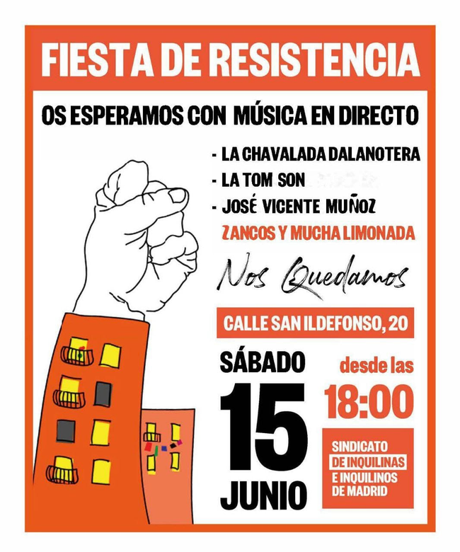 Además, han decidido que, a partir de ahora, su negociación no continuará sólo en silencio. Para dar a conocer su momento al vecindario han organizado una acción festiva y reivindicativa, una «fiesta de resistencia», para el próximo sábado. Desde las 18 horas, convocan a todas las personas que deseen apoyarlos en su empeño de quedarse en el barrio y en sus casas a un encuentro en el que la música tendrá gran protagonismo.