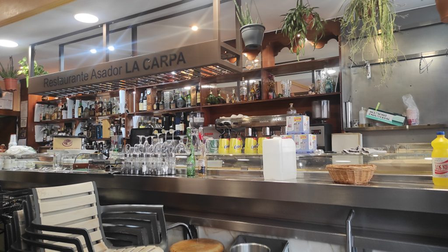 Volviendo la mirada nuevamente hacia el restaurante La Carpa, en sus cristaleras, además de los carteles sobre su «cierre por jubilación» destacan otros en los que se lee «Liquidación de enseres y aparatos de hostelería».