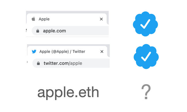 These labels are available to everybody. If somebody owns apple.eth, I would assume they are a speculative fruit investor. But if Apple.com and/or the Apple Twitter account claimed to be apple.eth, then I would trust it as a form of identity. Eventually they may get hacked so I would remain subscribed to the trusted channels.
