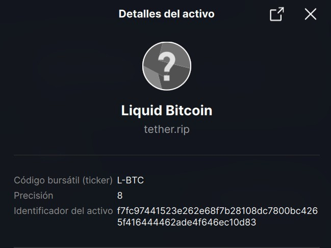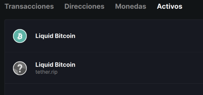 En ese momento, la víctima acababa de perder el BTC. ¿Por qué? En cadenas laterales como Liquid se pueden emitir activos digitales propios (shitcoins, vales etc). Pues bien, el atacante había emitido un token falso "L-BTC" que no era el "L-BTC" real.