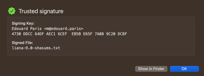 Ya puedes instalar Liana sin problemas. Solo tienes que descomprimir el archivo liana-9.0-x86_64-apple-darwin.tar.gz y hacer doble click en "Liana-gui"