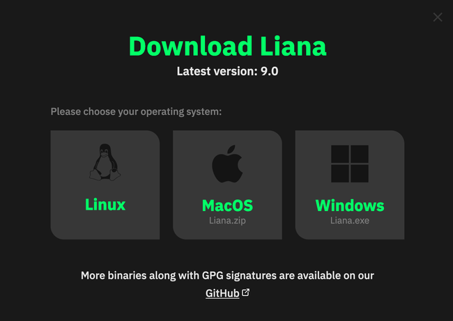 Accede a su pagina web: https://wizardsardine.com/liana/ y pulsa en "Download Liana".
