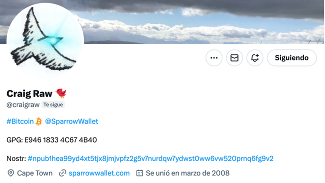 Con su email: craigraw@sparrowwallet.com en la opcion de lookup key