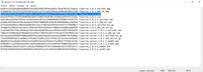 El archivo "sparrow-1.8.1-manifest.txt" con los hashes se ve tal que así: