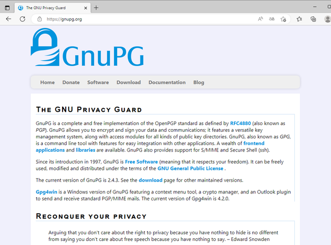 Para instalar GPG4WIN iremos a la web de GnuPG, a la sección de Download.