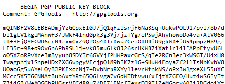Localizas el bloque de la clave pública que quieres añadir https://keybase.io/craigraw/pgp_keys.asc