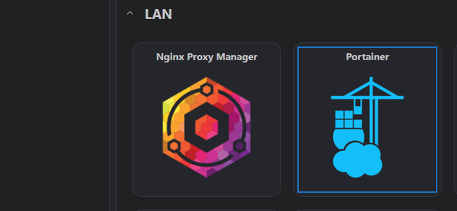 Muy sencillo, vamos a nuestro dashboard Homarr, pinchamos en nuestro Portainer.