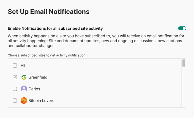This will be the pop up when asking users if they want to get email notifications. The specific email setting will only be accessible form the notifications setting section.