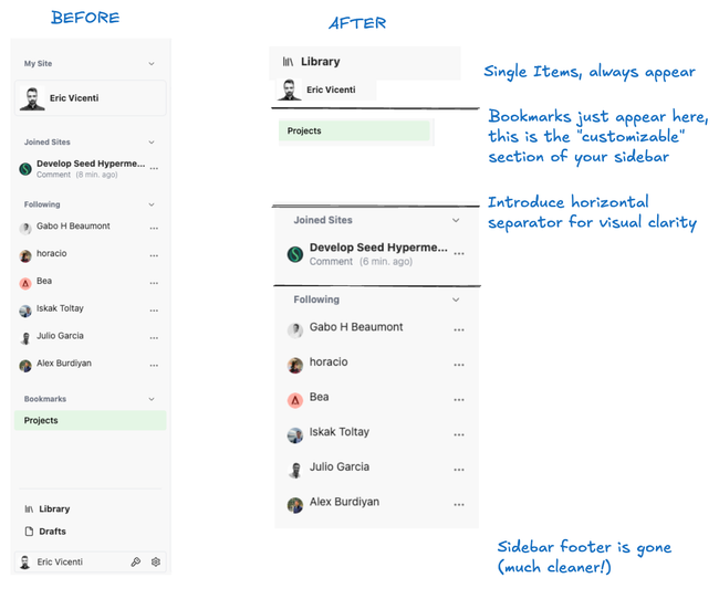 I feel like our app sidebar is very disorganized, and we have many opportunities for improvements.