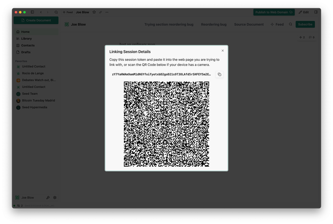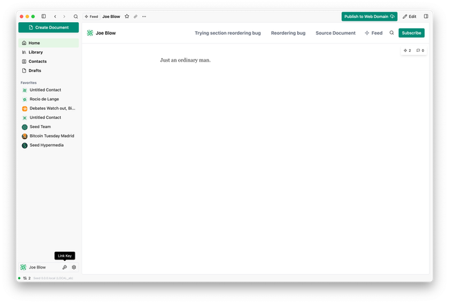 Some time ago we enabled the ability to create Web Crypto keys in the browser on all Seed sites, for users to be able to sign their comments right on the site they are visiting. Previously they were redirected to hyper.media because this was the only place where their identity key lived, as Web Crypto keys are tied to a single domain and can't be shared securely.